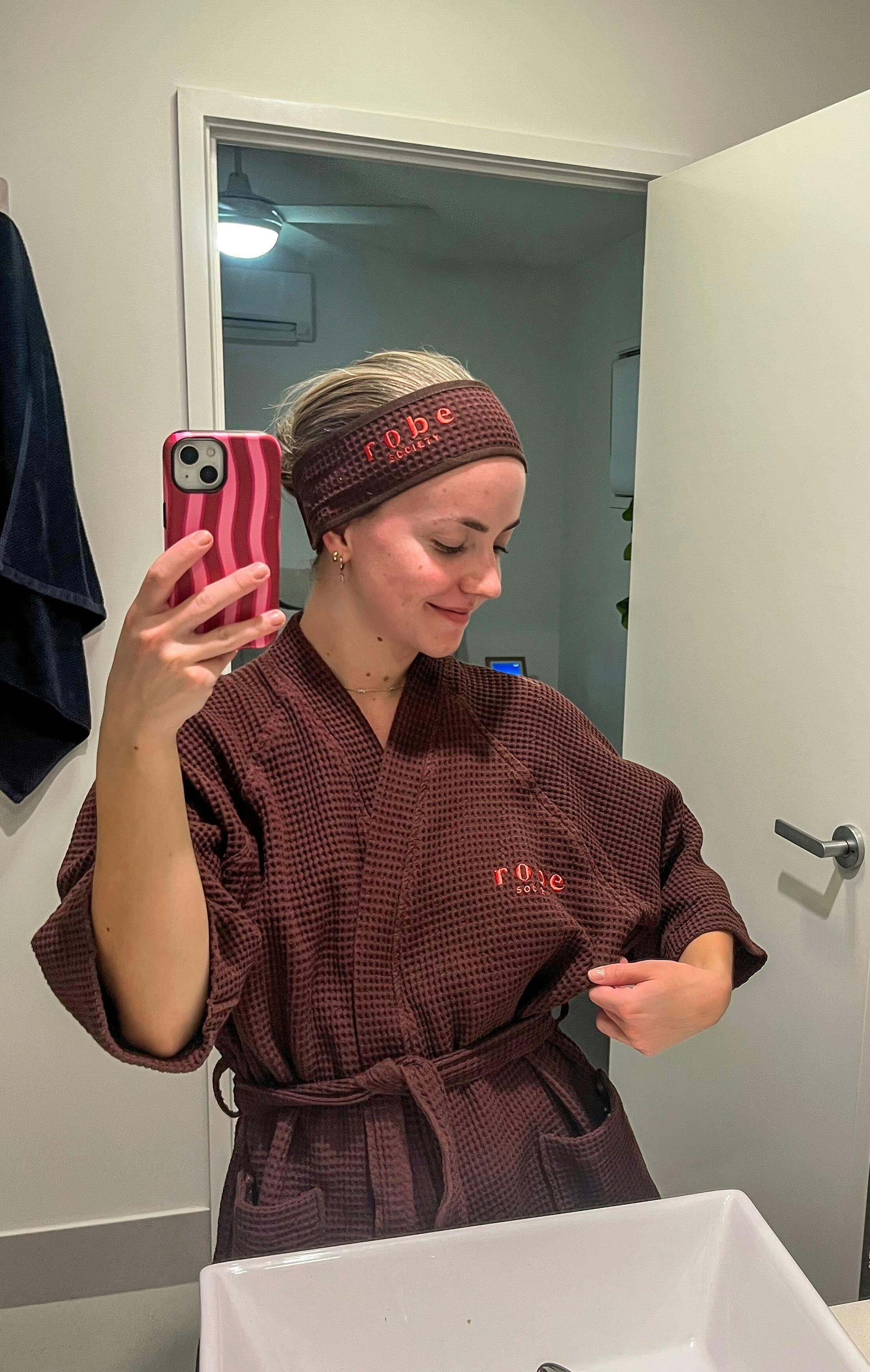 Can you feel that? That’s cool ocean air, stitched into every light blue wave of me. I’m Cloud Nine, Robe Society’s breezy summer robe, here to keep you fresh, relaxed, and effortlessly comfortable — even on the hottest days.