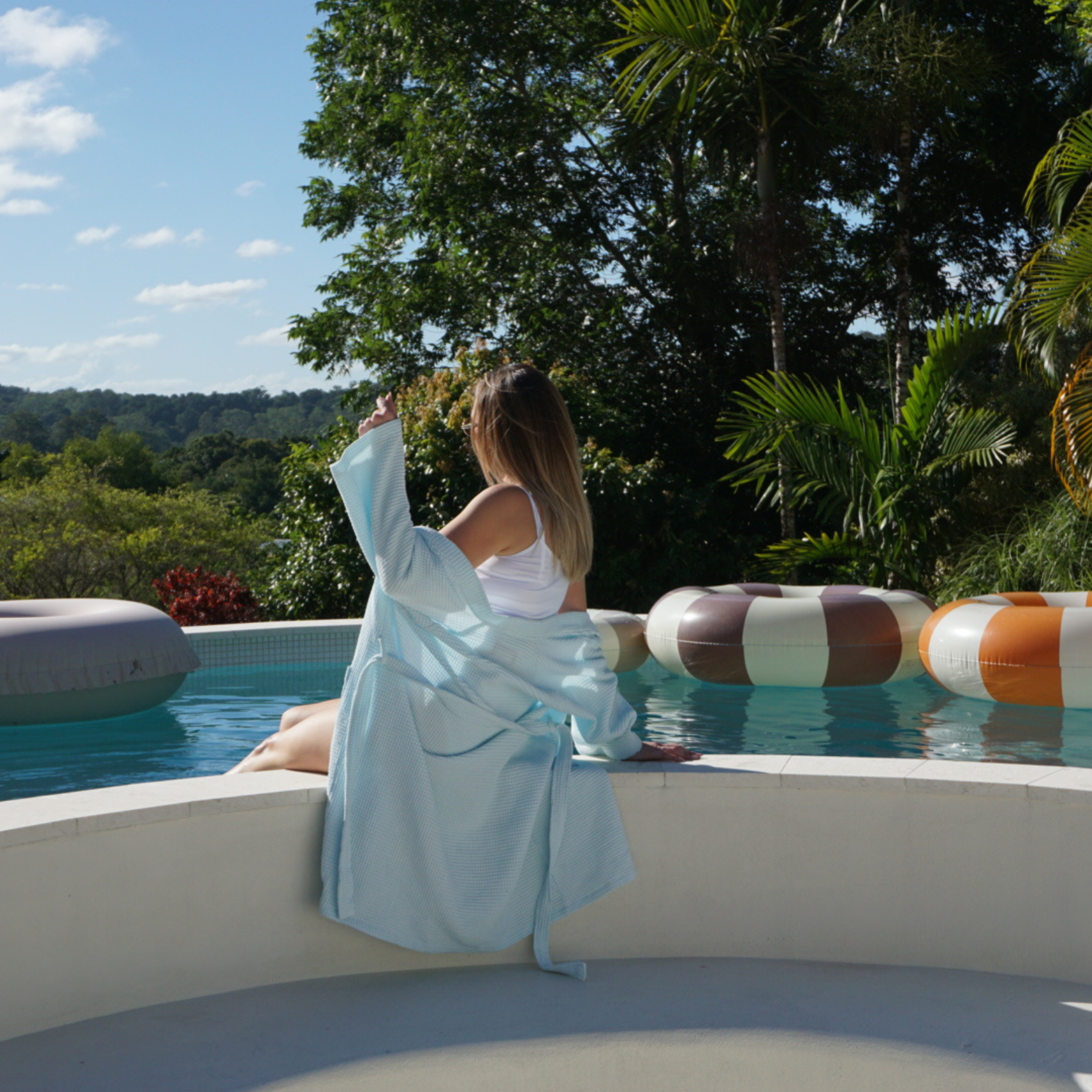 I’m the ultimate blue summer robe for slow mornings, salty evenings, and anyone craving that stay-cool, feel-good kind of comfort.