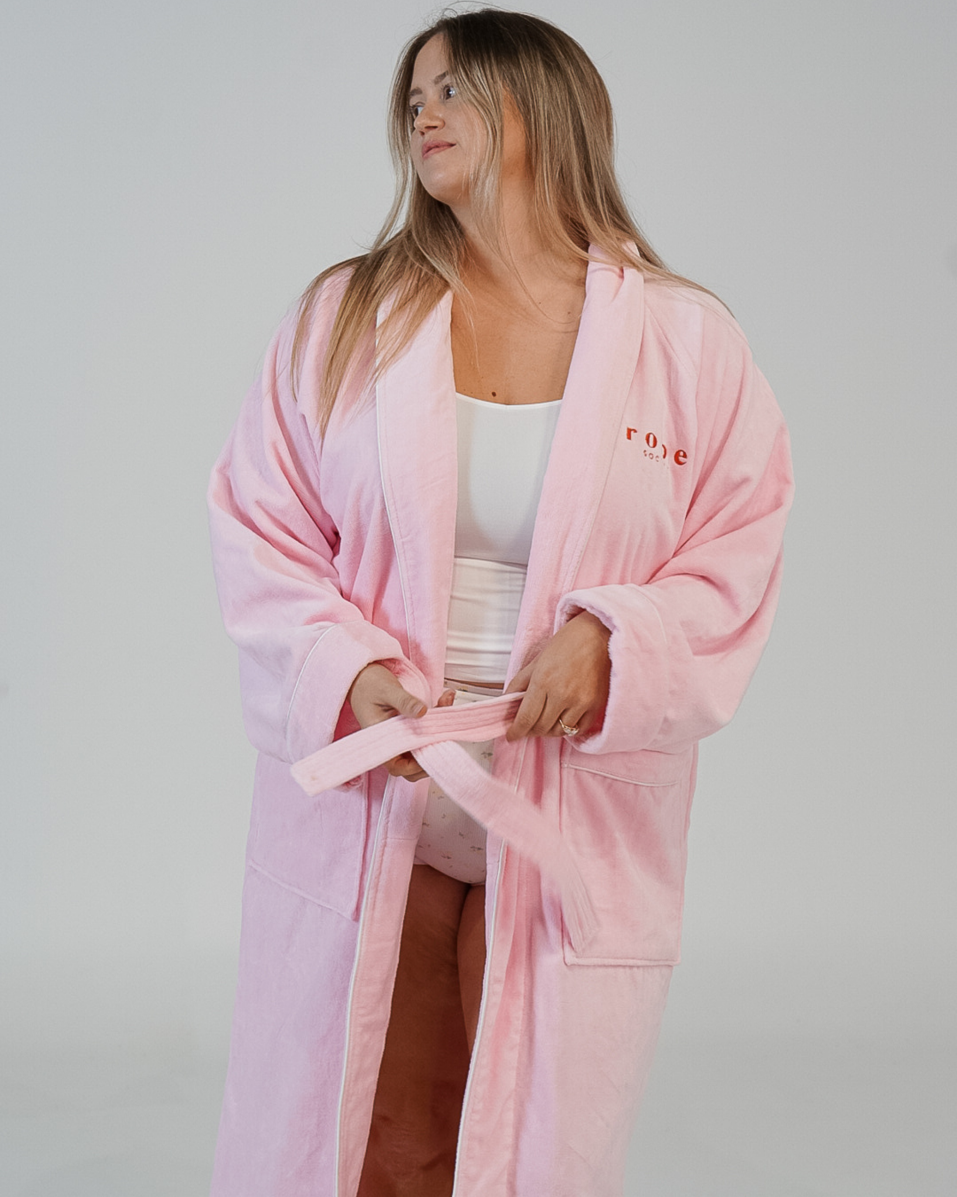 Hey Cutie! I’m Marshmallow Fluff, the dreamy light pink bathrobe from Robe Society that feels like wrapping yourself in a cloud. Sweet, cozy, and impossible to take off.